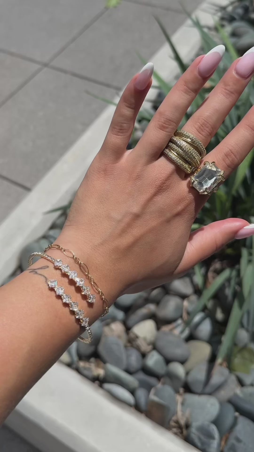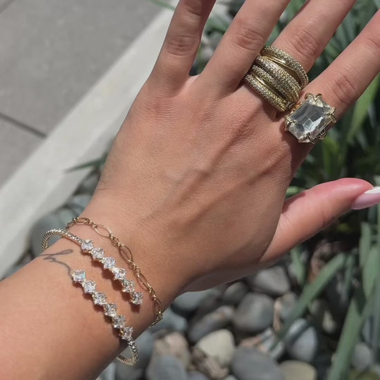 Delicate but far from boring, this golden cuff is made for wrist flicks during golden hour and clinking glasses by the cabana. With double rows of shimmer, she’s all about soft glam with bold intentions. Wear it solo or stacked—either way, expect attention.