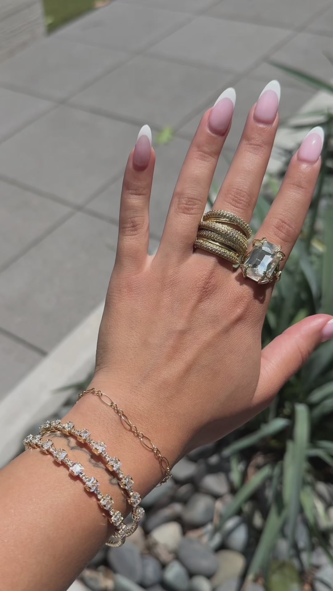 This two-row sparkle cuff is your wrist’s new favorite plus-one—perfect for sun-drenched days and candlelit nights. She’s effortlessly chic, endlessly flirty, and knows how to catch light and attention. Wear it solo or stack it like your summer schedule: fully booked ;)