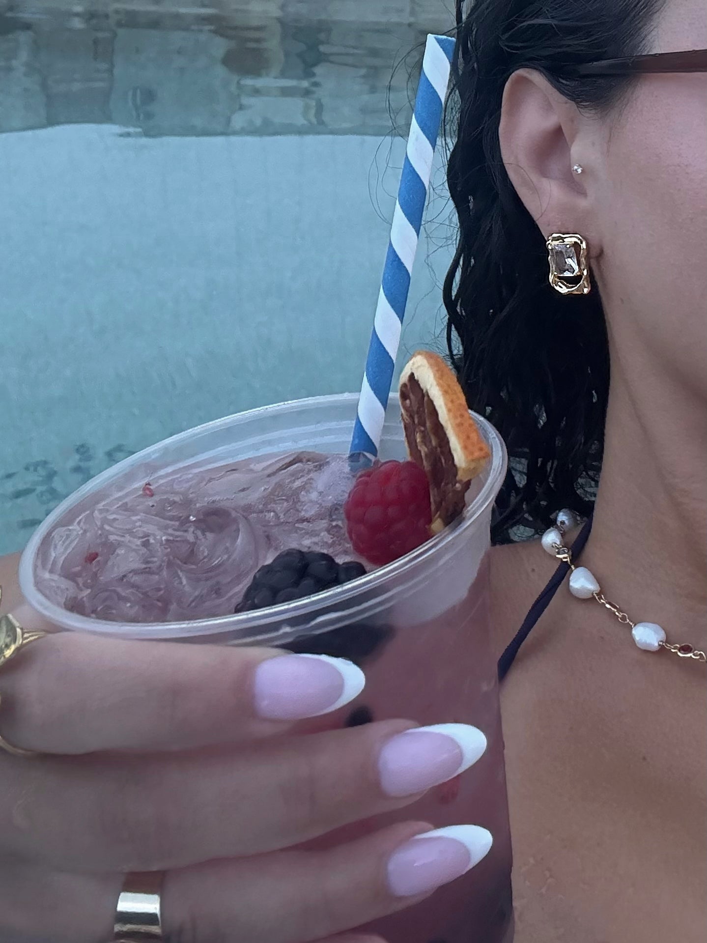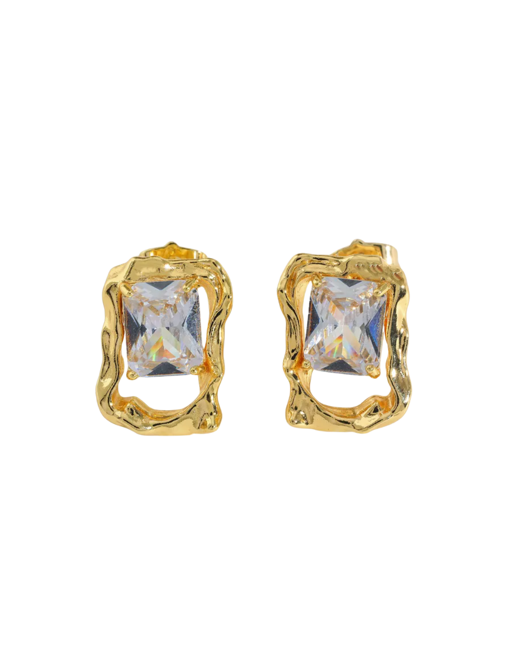 Like a poolside spritz in earring form—these molten gold mini hoops bring the heat. With their wavy frame and icy sparkle, they’re made for golden hour selfies, rooftop rendezvous, and pretending you're on a yacht (even if it’s just brunch with the girls). Warning: may cause excessive compliments.
